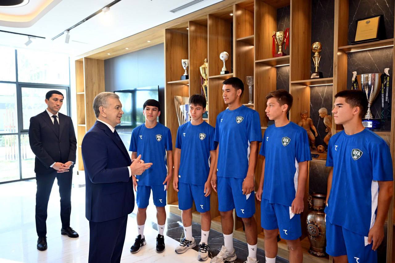 Давлатимиз раҳбари шу ерда спорт фахрийлари ва ёш футболчилар билан суҳбатлашди. Ўзбекистонда футбол энг оммавий спорт экани, уни ривожлантириш изчил давом эттирилиши таъкидланди.