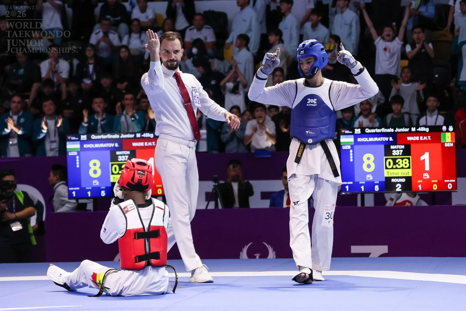Йигитлар ўртасида -45 кг вазн тоифасида кечган беллашувларда Шоҳжаҳон Холмуродов ярим финалгача етиб келди. Финал остонасида у таиландлик рақибимга имкониятни бой берди ва мусобақани бронза медали билан якунлади.