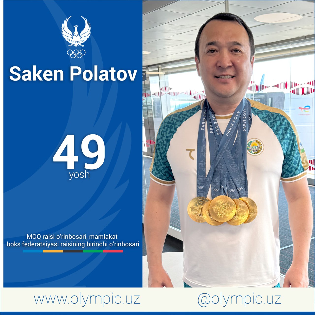Бугун МОҚ раиси ўринбосари, мамлакат бокс федерацияси раисининг биринчи ўринбосари, «Дўстлик» ордени...