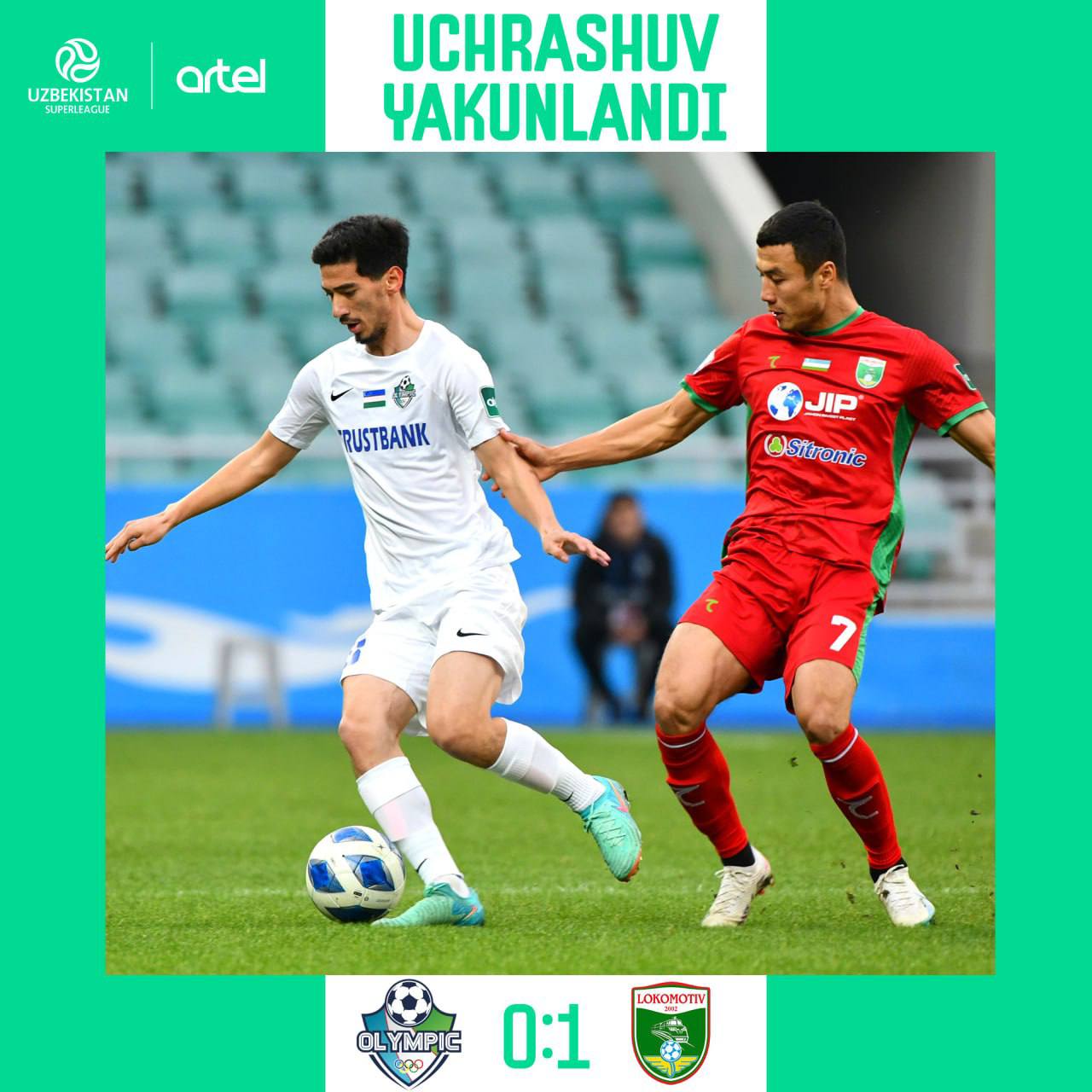 Суперлига. 2-тур Олимпик 0 - 1 Локомотив Голлар: Д.Крайишник 42ʼ «Олимпик» иккинчи турда пойтах...