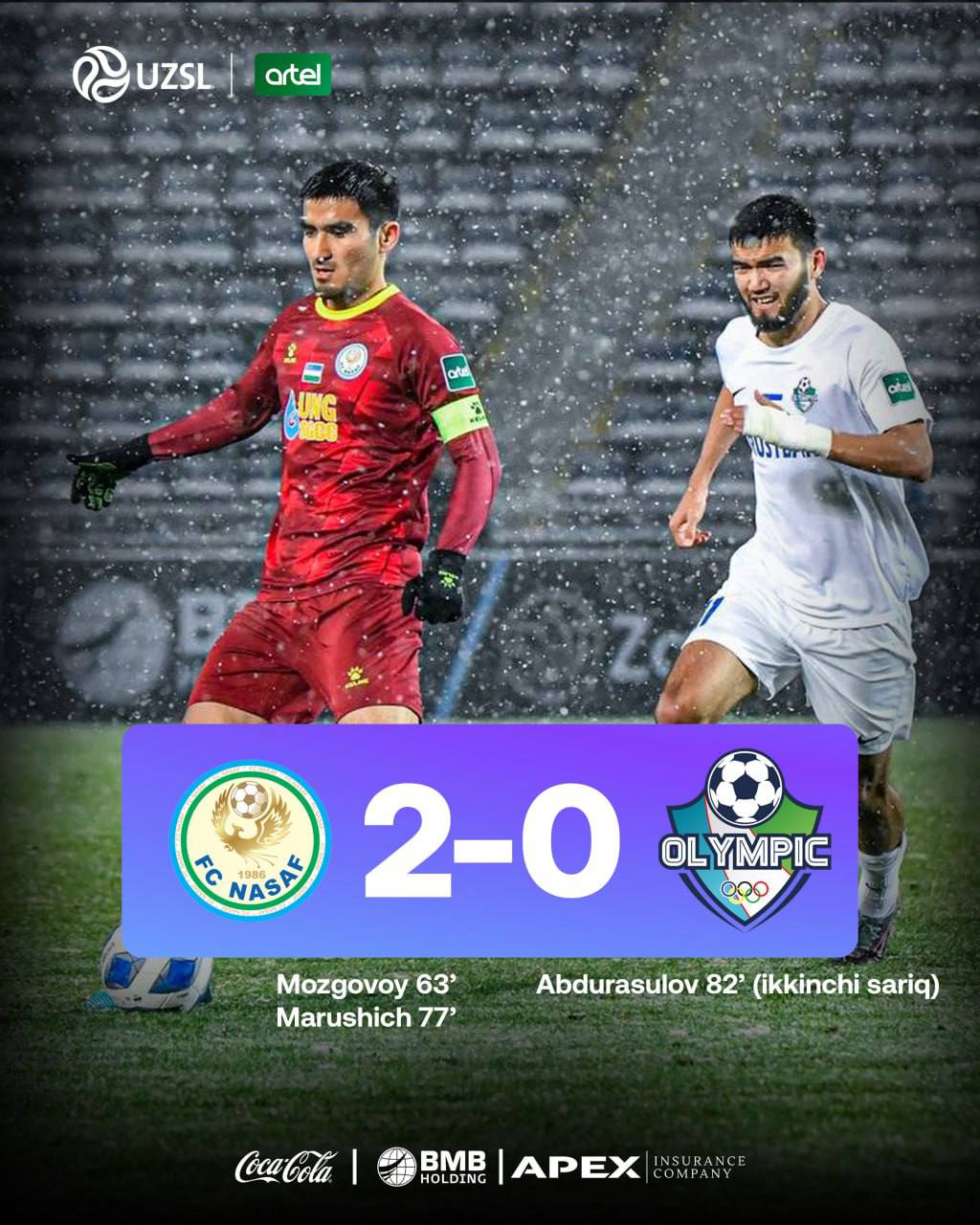Суперлига. 1-тур Насаф 2 – 0 Олимпик Голлар: А.Мозговой 63ʼ, З.Марушич 77ʼ «Олимпик» янги мавсумд...