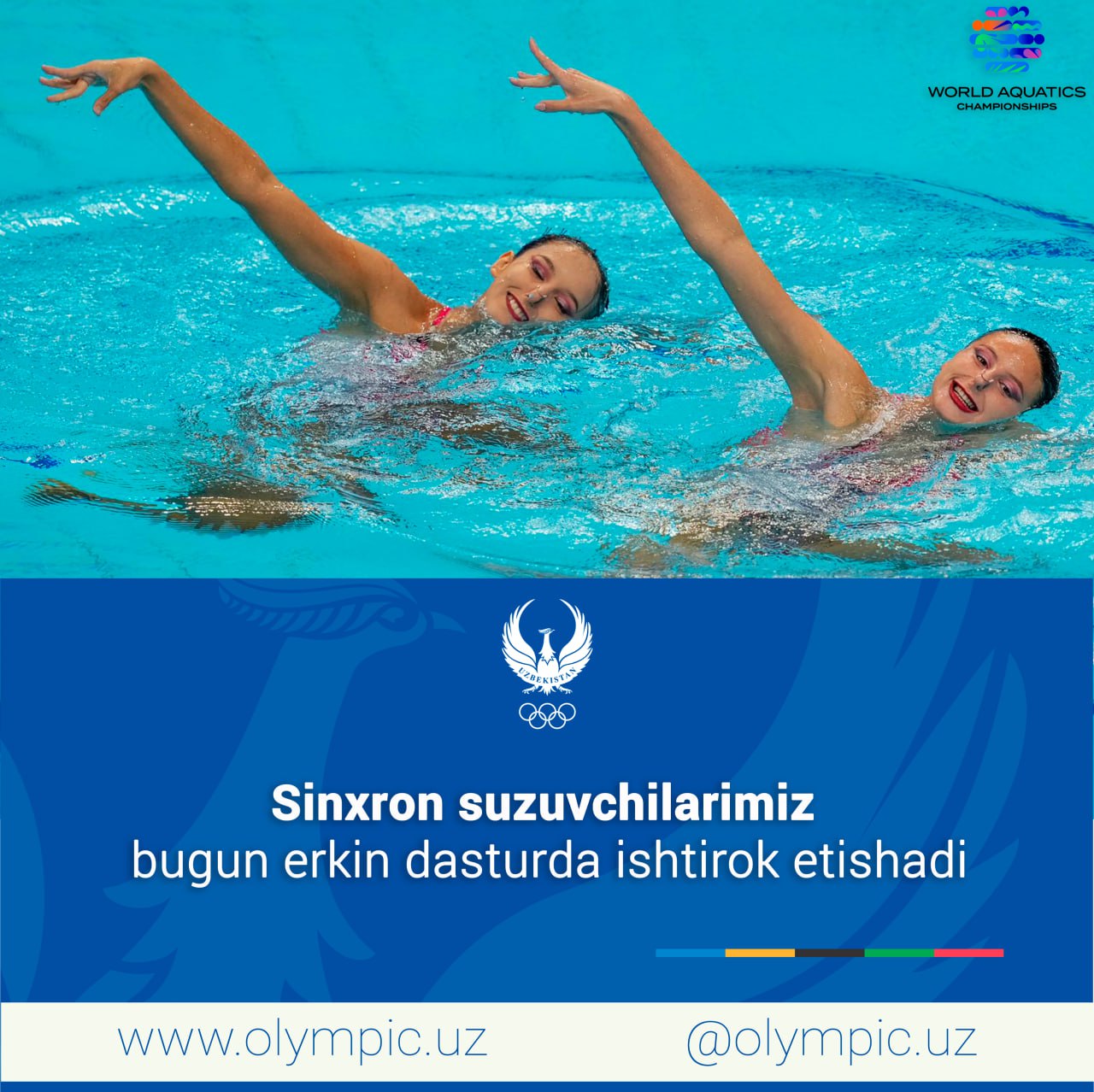 Қатарда сув спорти турлари бўйича жаҳон чемпионати давом этади. Бугун синхрон сузувчиларимиз Зиёдахо...