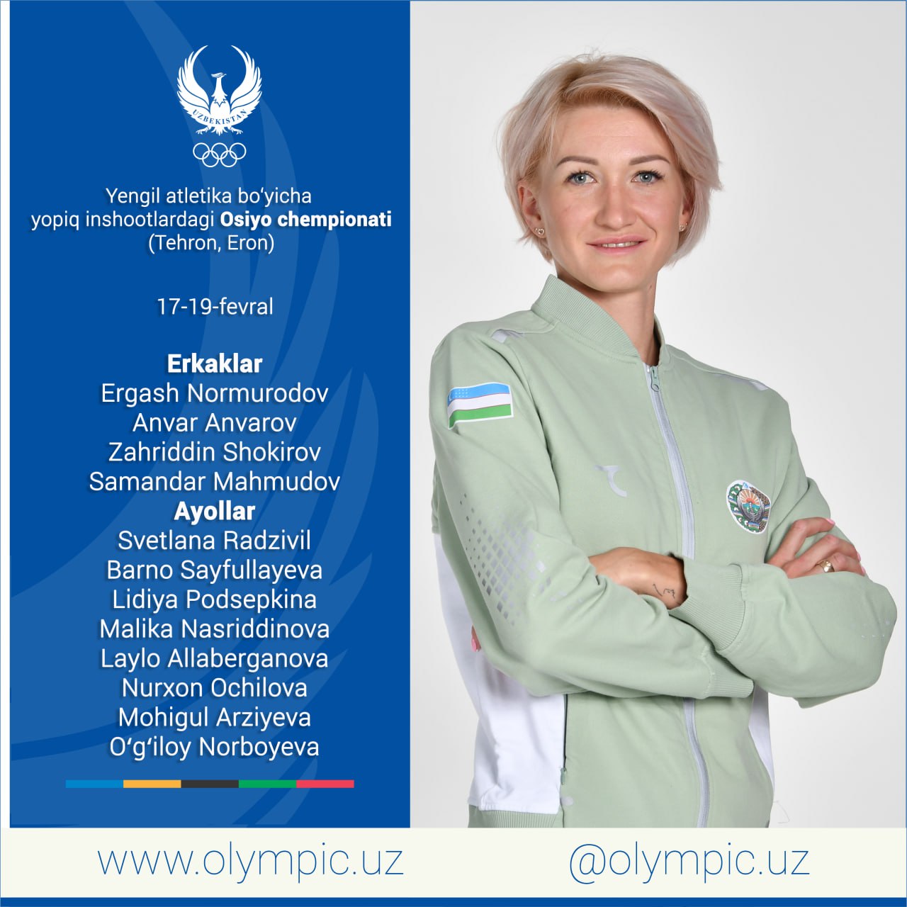 17-19 февраль кунлари Эрон пойтахти енгил атлетика бўйича ёпиқ иншоотлардаги Осиё чемпионатига мезбо...