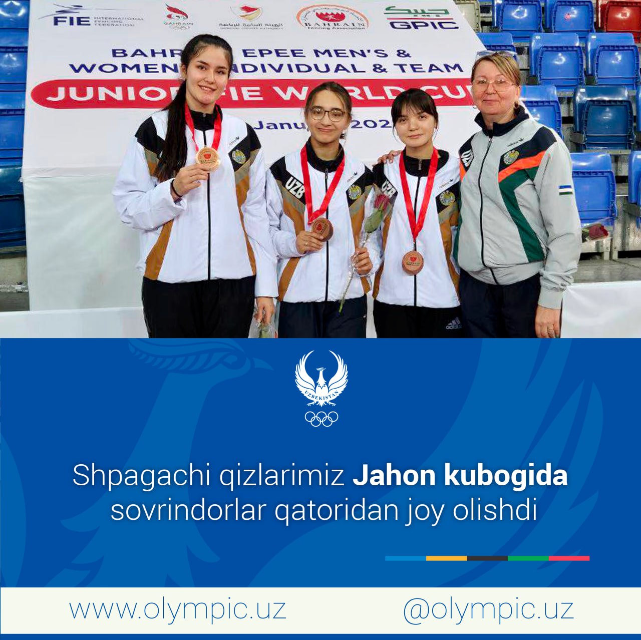Қиличбозликнинг шпага йўналиши бўйича Ўзбекистон ёшлар терма жамоаси Баҳрайда ўтган Жаҳон кубогида и...