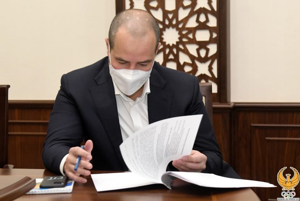 Today, the leadership of the NOC held a meeting during which new facilities that will be built for competitions and sports that will be included in the program were discussed. The event was attended by the head of the NOC Rustam Shaabdurakhmanov and his first deputy Ravshan Irmatov, Secretary General of the Committee, Director of the Directorate "tAshkent-2025" Oybek Kasymov, Deputy Chairman of the NOC Sherzod Tashmatov and the Committee's specialists in this area.