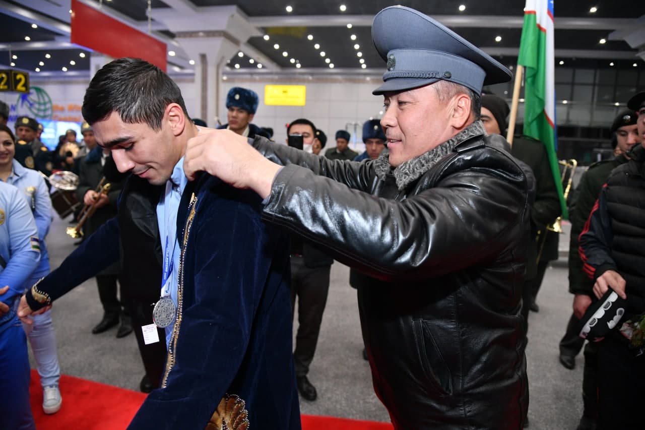 Domestic masters of leather gloves were met at the Tashkent International Airport named after Islam Karimov. The event was attended by officials of the Boxing Federation of Uzbekistan, the Ministry of Internal Affairs, the Ministry of Defense, relatives and fans of our athletes.
