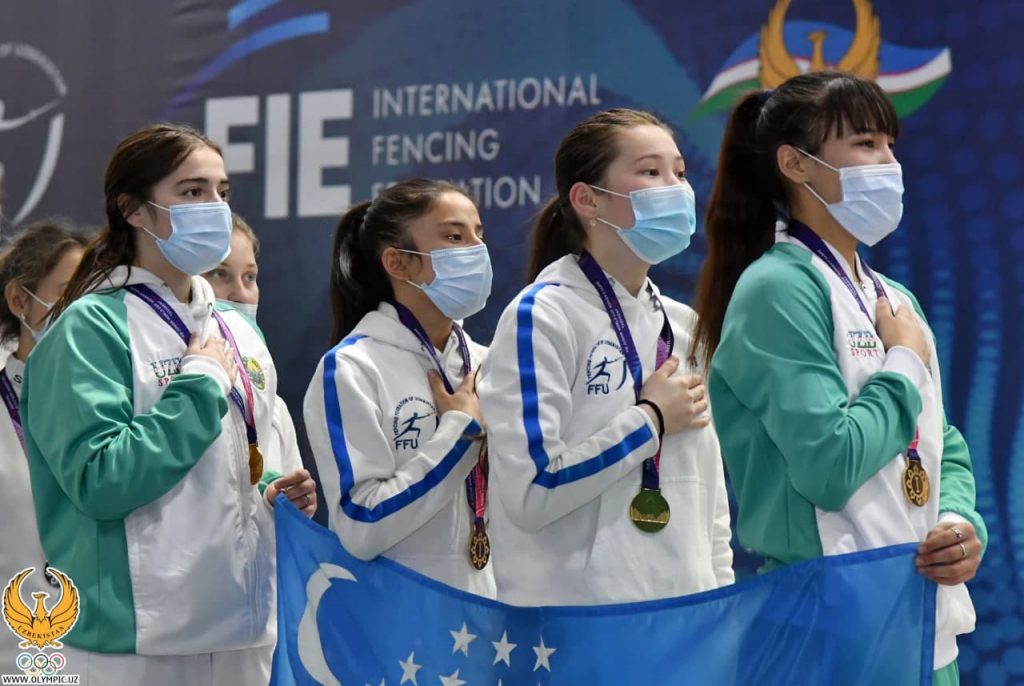 At the Fencing World Championship held in our capital today, our girls won a historic victory. Domestic athletes have surpassed Russian fencers, who are successful and famous athletes of the world. We bring to your attention a photo from the performance of our fencers: