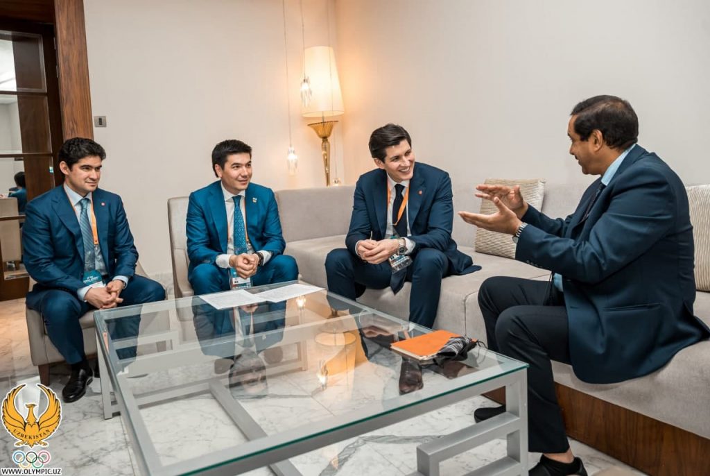 Our delegation, within the framework of the 40th General Assembly of the Olympic Council of Asia (OCA), took part in a number of meetings to further strengthen the development of sports in our country, exchange experience with foreign countries. In particular, the head of our delegation, OSA Vice-President Otabek Umarov held meetings with the leaders of the Olympic Movement of developed countries, heads of National Olympic Committees and International organizations. These events were also attended by the Secretary General of the NOC of Uzbekistan Oybek Kasimov and the Deputy Chairman of the Committee Azizjon Kamilov.