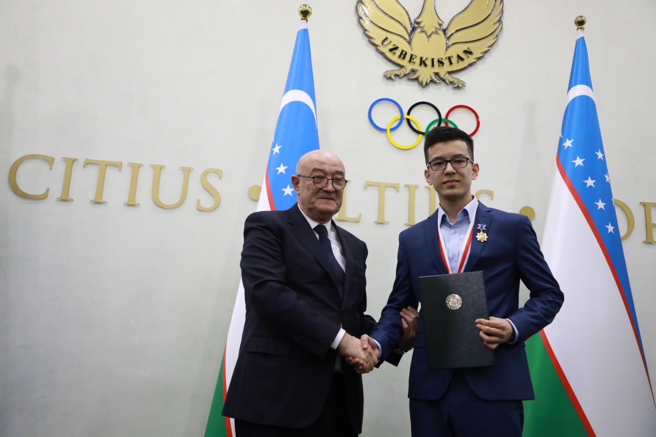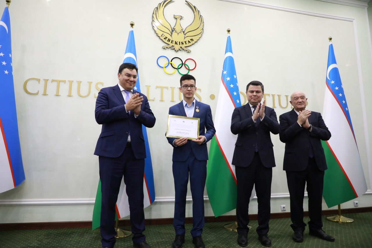 Today, the National Olympic Committee of Uzbekistan hosted an award ceremony for our young hero. The event was attended by Advisor to the President of the Republic of Uzbekistan Abdujabbor Abduvokhidov, Deputy Head of the Presidential Administration, Press Secretary of the President of the Republic of Uzbekistan Sherzod Asadov, Deputy Prime Minister of the Republic of Uzbekistan, Minister of Tourism and Sports, Chairman of the Chess Federation of the country Aziz Abdukhakimov, representatives of the NOC headed by Rustam Shaabdurakhmonov, Director of the Agency for Youth Affairs, Senator Alisher Sadullayev, relatives and relatives of Nodirbek Abdusattarov, the general sports community, employees of a number of media.