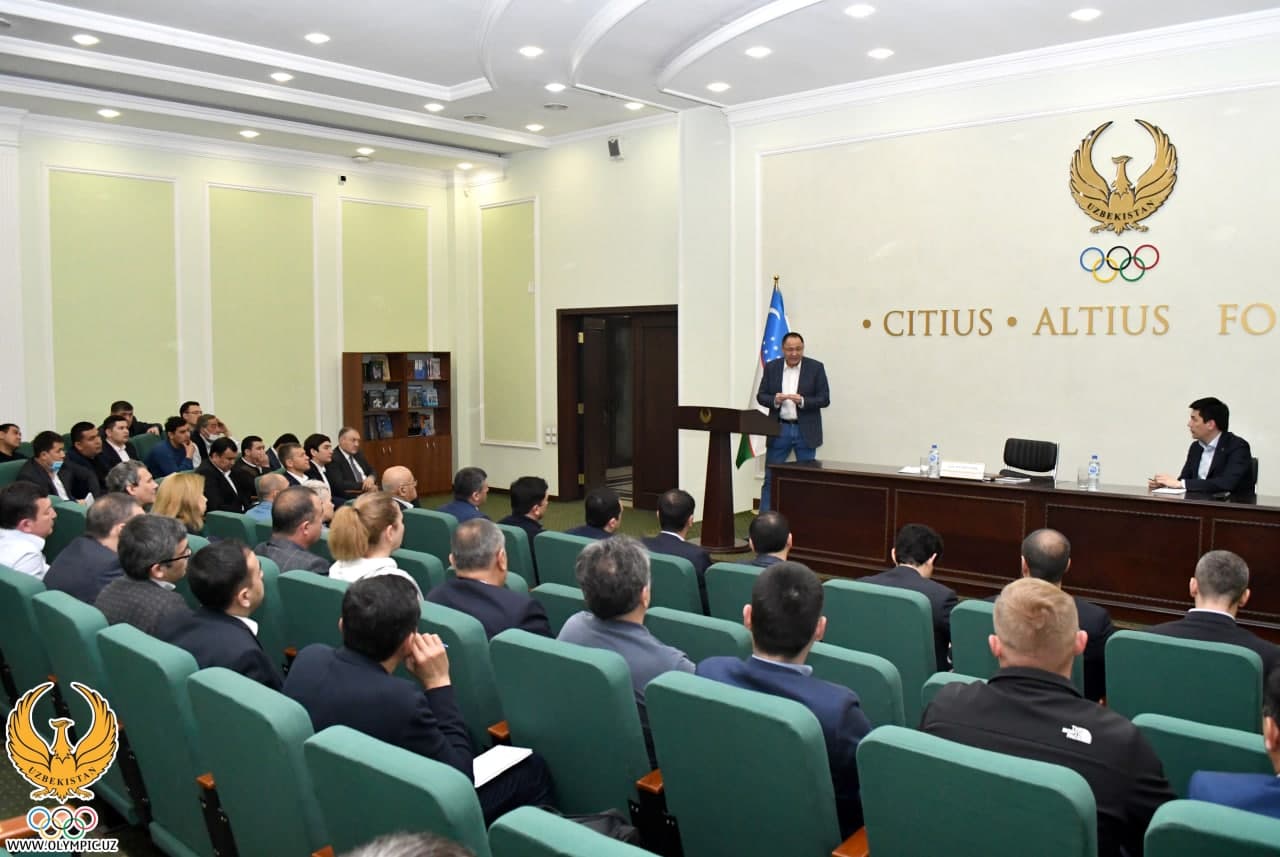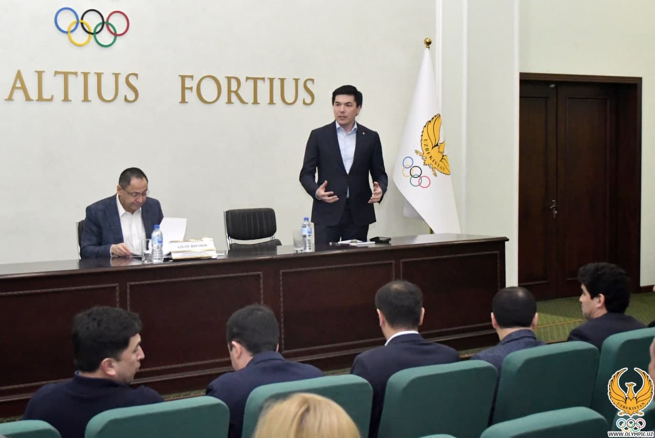 As you know, a few days ago, the Ministry of Sports Development was established by the relevant decree of the President of the Republic of Uzbekistan, its composition was formed. Today, Sports Development Minister Adham Ikramov met with representatives of the NOC leadership, responsible persons of sports Federations and Associations, discussed upcoming plans. The event was held by the Secretary General of the NOC Oybek Kasimov, who once again introduced everyone to Adham Ilkhamovich, who is a well-known personality in the sports field. After that, the Minister of Sports Development made a speech on the agenda.