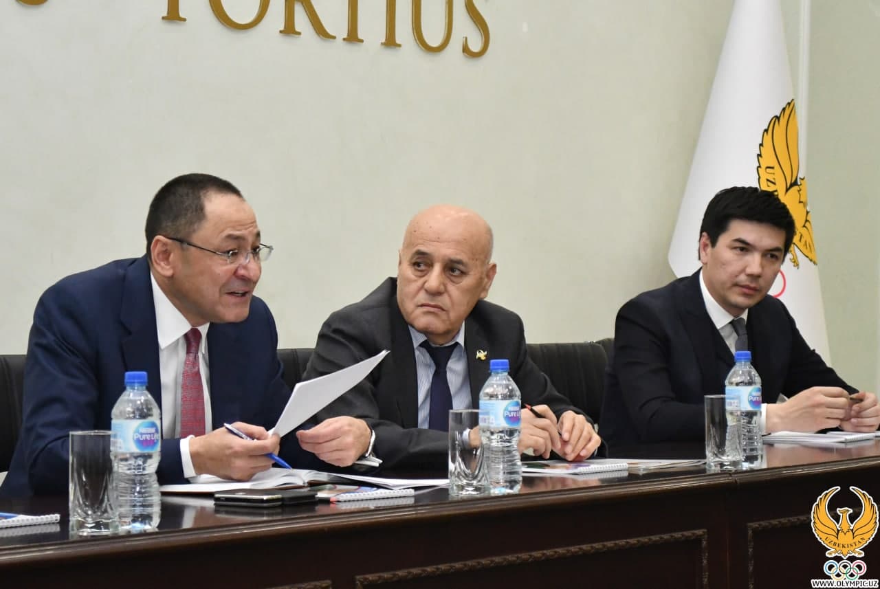 Minister of Sports Development Adham Ikramov held another meeting with specialists of the sphere aimed at bringing the development of physical culture and sports in our country to a new level. The event held at the NOC was held with veterans who have worked for many years for the benefit of the development of Uzbek sports. It was attended by Adham Ikramov and his deputy Shakhrillo Mahmudov, Secretary General of the NOC Oybek Kasimov, Deputy Chairmen of the Committee Azizjon Kamilov and Sherzod Tashmatov, as well as about 100 famous sports veterans headed by the Chairman of the Council of Veterans of Sports of Uzbekistan Bahodir Mahsitov.