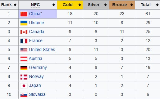 The Beijing 2022 Winter Paralympic Games have ended. Medal standings TOP 10: