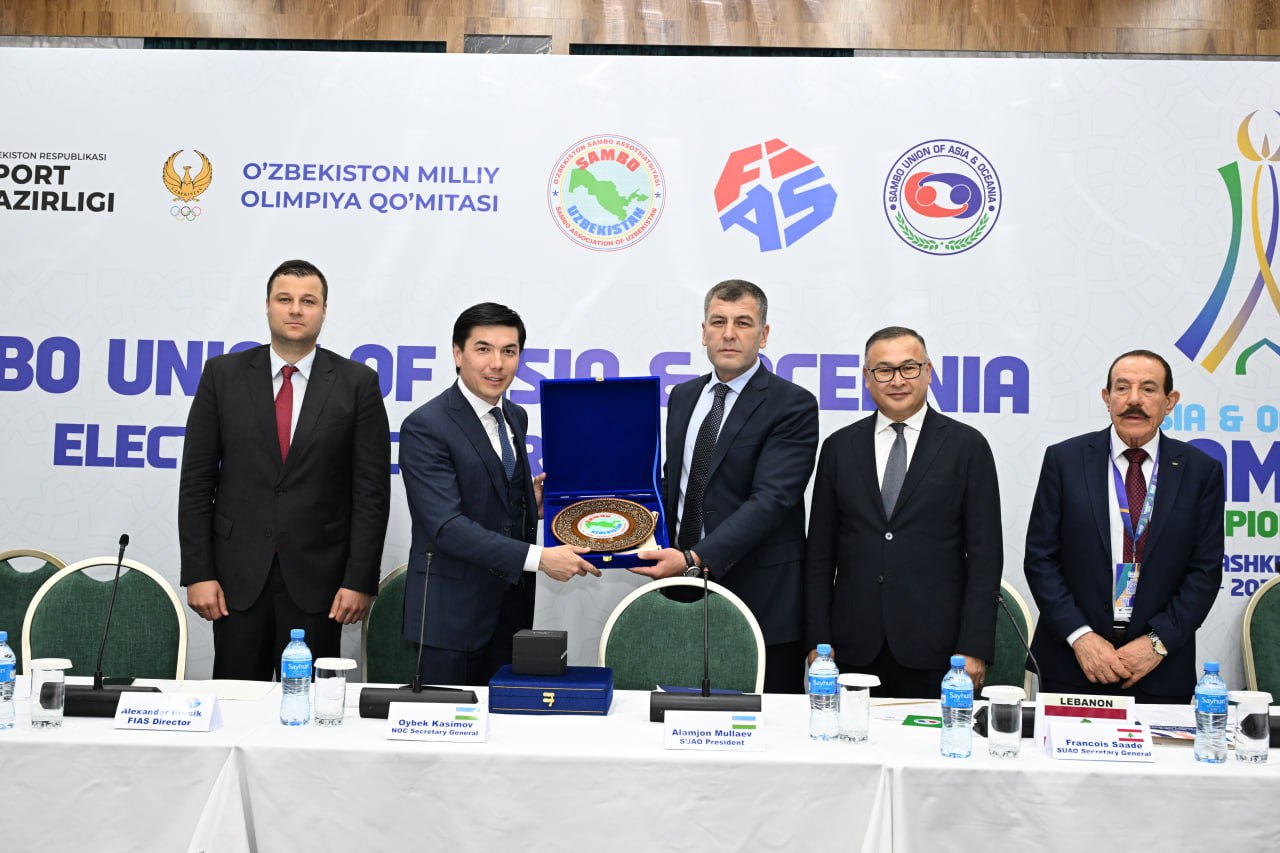 Representing the National Olympic Committee of Uzbekistan, NOC Secretary General Oybek Kasimov took part in the event. In his speech, Oybek Omilovich emphasized the importance of sambo for national sports and noted that this combat discipline is becoming a part of major multi-sport tournaments.