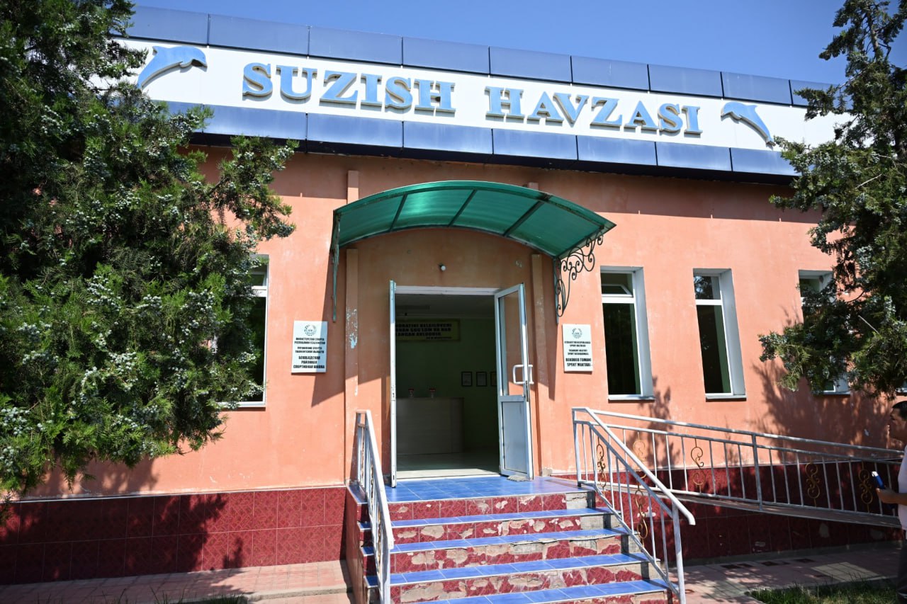 During the visit, the delegation toured several key facilities, including the Bekabad District Sports School, the Central Football Stadium, a swimming pool located in the "Guliston" neighborhood, and the canoeing base of the specialized water sports school, where they reviewed the conditions provided for local youth.