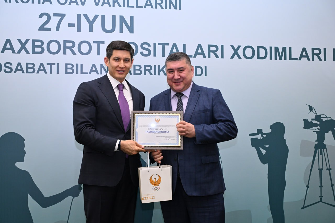 The event was opened by Otabek Umarov, First Vice President of the NOC of Uzbekistan. In his remarks, he congratulated all media representatives on their professional holiday, wishing them continued creative success, strong health, and good fortune.