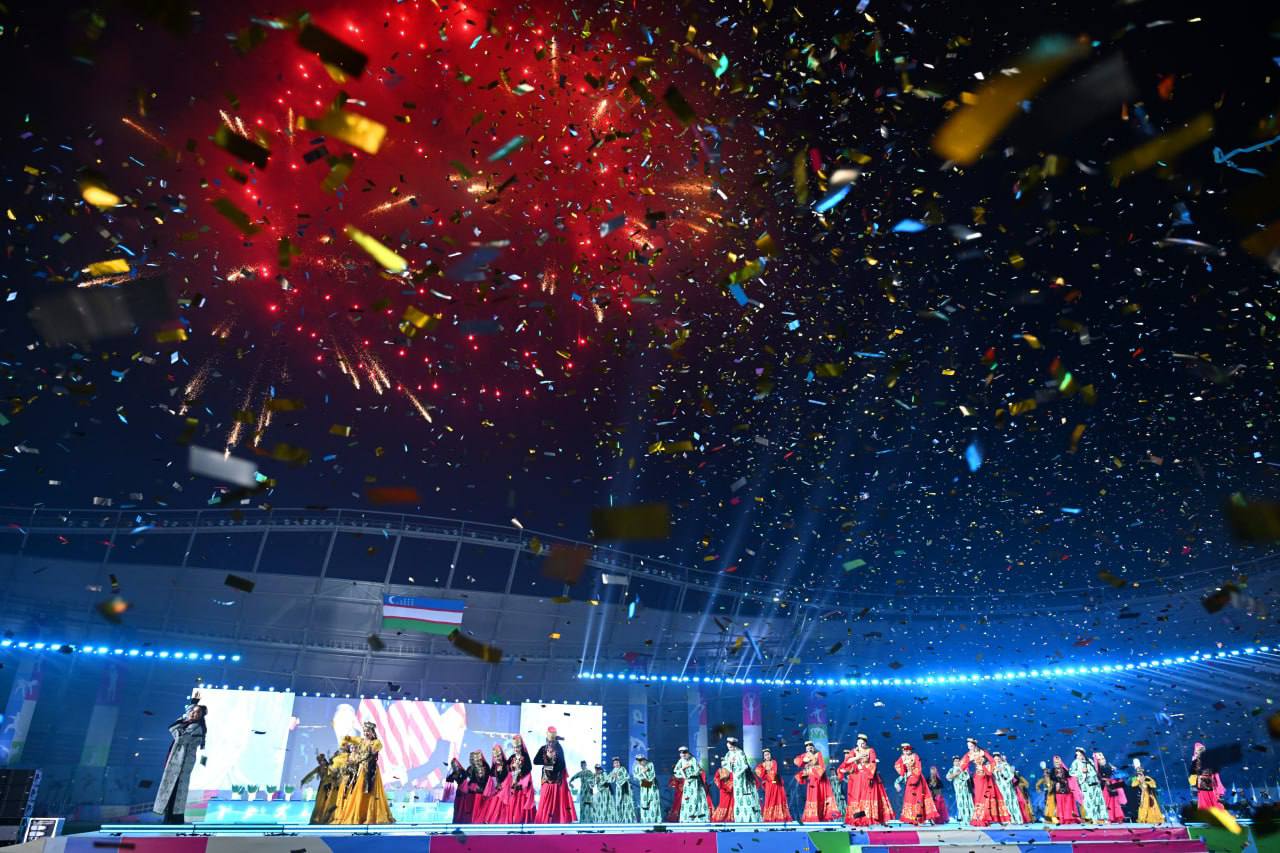 The flag of Uzbekistan was brought into the stadium and raised, and the national anthem of our country was played.