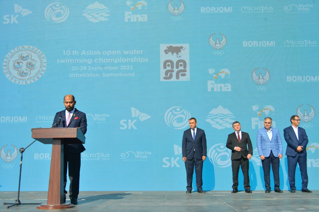 Samarqand shahrida boshlangan ochiq havzada suzish boʻyicha X Osiyo chempionatining tantanali ochilish marosimi va musobaqaning ilk startidan fotosuratlar