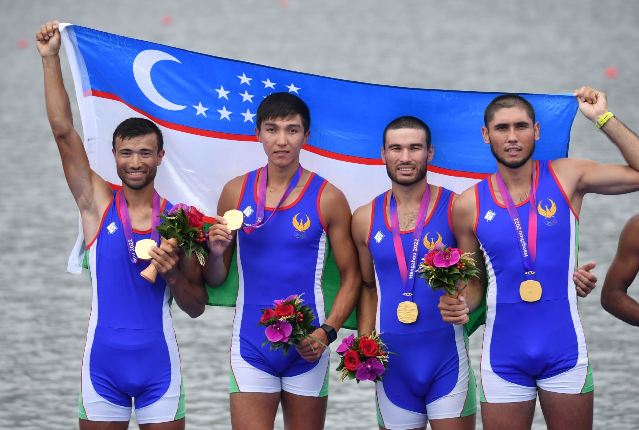 Akademik eshkak eshuvchilarimiz Osiyo oʻyinlaridagi ishtiroklarini yakunlashdi. Sportchilarimiz musobaqa davomida 2 ta oltin, 4 ta kumush va 1 ta bronza medallarini qoʻlga kiritib, mazkur dasturda Xitoydan soʻng ikkinchi oʻrinni egallashdi. Bugun M4- va M4x dasturlarida shohsupaga koʻtarilgan yigitlarimizning chiqishi va taqdirlash marosimidan suratlarni tomosha qiling: