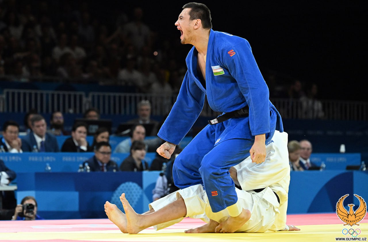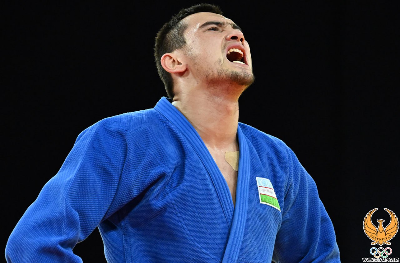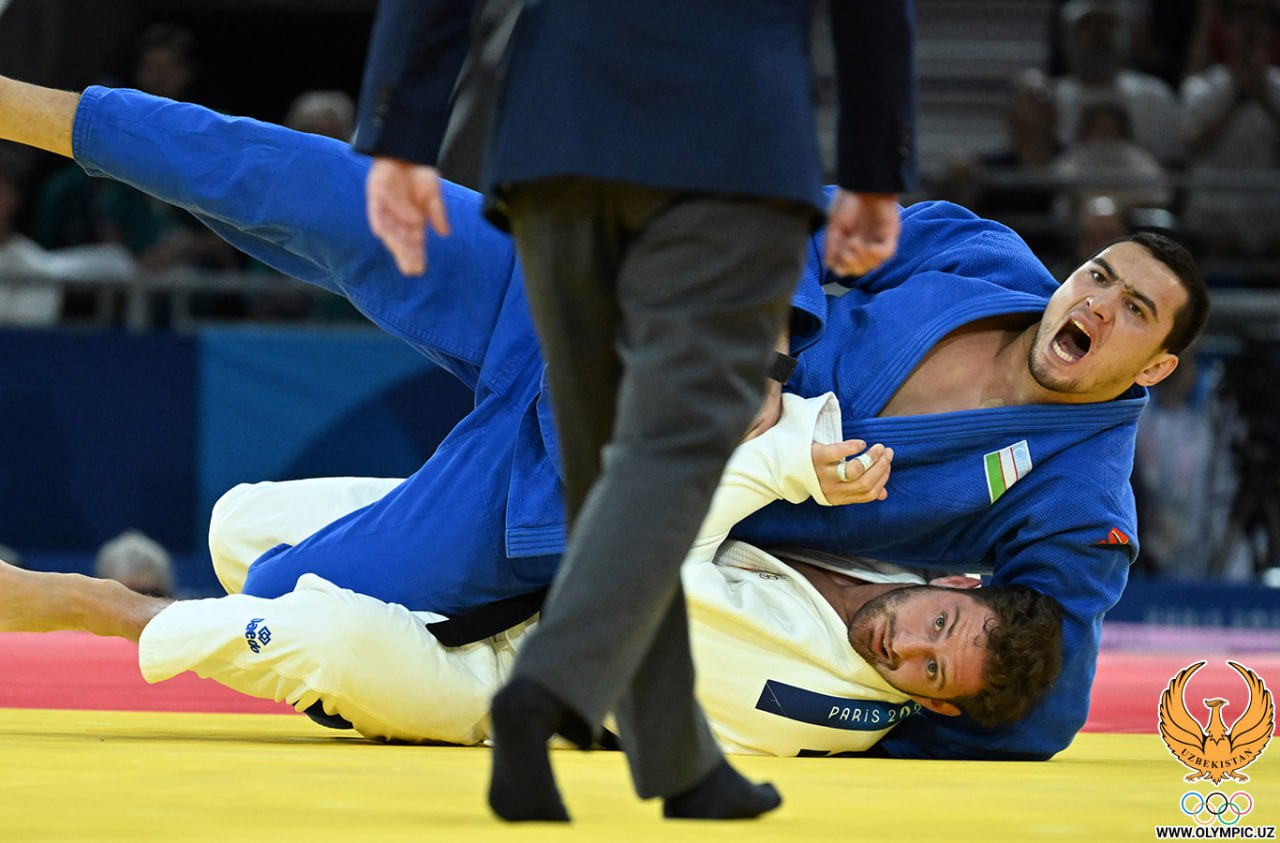 Muzaffarbek To’raboyevning O’zbekiston delegatsiyasiga ikkinchi medalni taqdim qilgan bahsidan yorqin suratlar