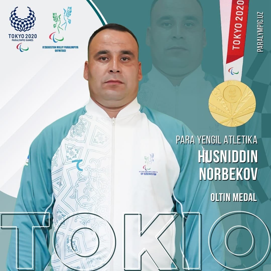 Mahoratli para-yengil atletikachimiz Husniddin Norbekov Tokio-2020 Paralimpiya oʻyinlarida gʻalaba qozonib, delegatsiyamiz hisobiga navbatdagi oltin medalni keltirdi.