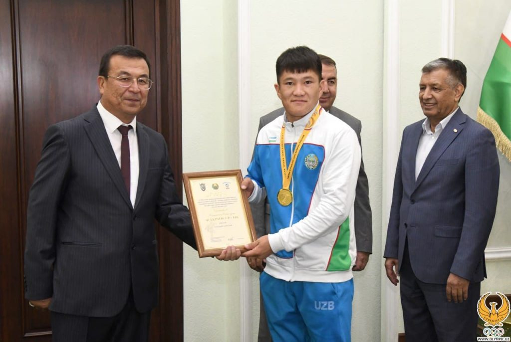 Shundan soʻng Qozonda muvaffaqiyatga erishgan belbogʻli kurashchilarimiz va sohani rivojlantirish yoʻlida samarali mehnat qilayotgan murabbiylar, federatsiya mutasaddilari, OAV vakillariga esdalik sovgʻalari topshirildi. Taʼkidlash joiz, belbogʻli kurashchilarimiz Qozonda 7 ta oltin, 3 ta kumush va 1 ta bronza medallarini qoʻlga kiritib, delegatsiyamizning yuqori pogʻonaga koʻtarilishlarida munosib hissa qoʻshdilar.