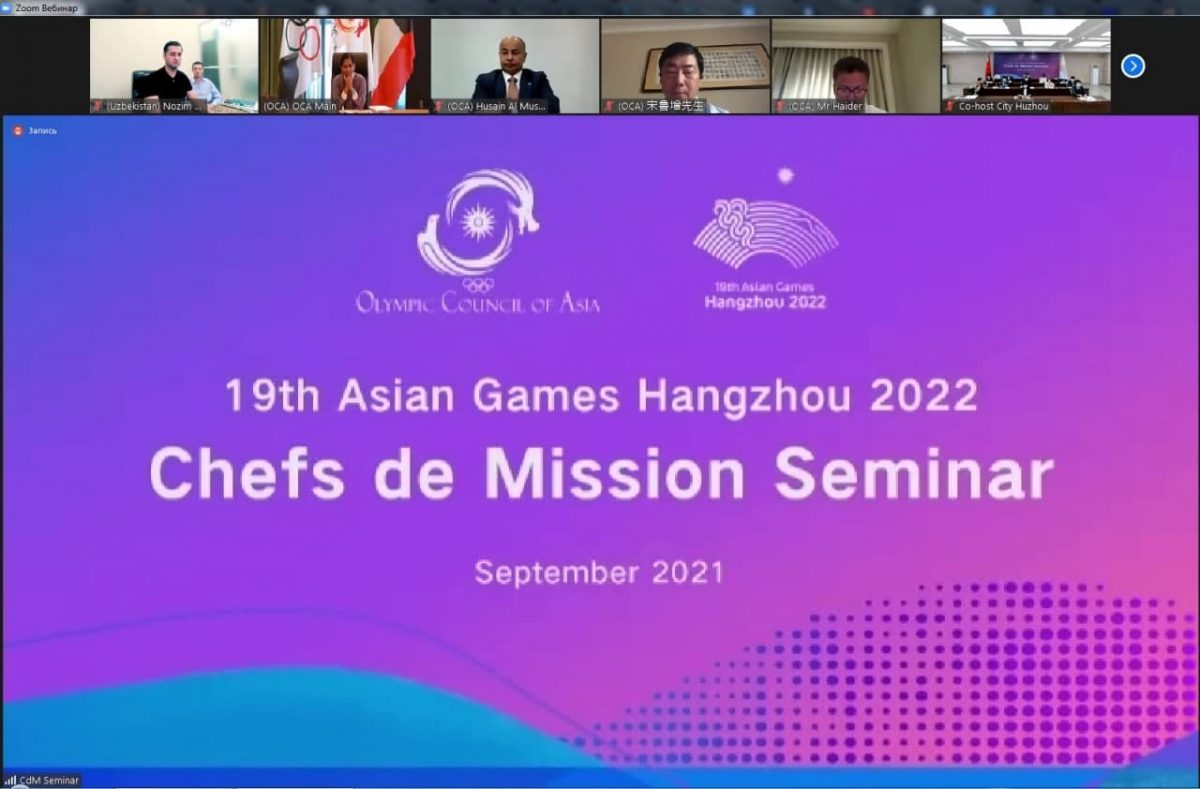 8-9-sentyabr kunlari Xanchjou-2022 Osiyo oʻyinlarining bir qator tashkiliy masalalari yuzasidan onlayn seminar boʻlib oʻtdi. Unda Osiyo Olimpiya kengashi va musobaqa tashkiliy qoʻmitasi rahbariyati, Osiyo-Okeaniya Milliy Olimpiya qoʻmitalarining vakillari qatnashishdi.