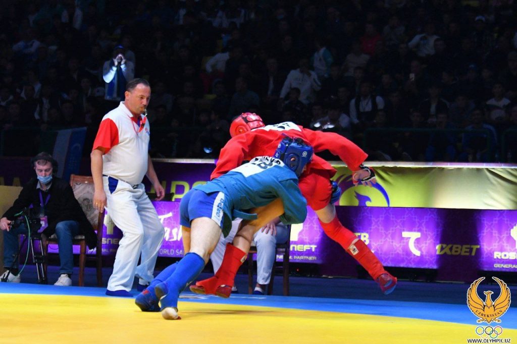 Poytaxtimizdagi “Yunusobod” sport majmuasida o‘tayotgan sambo bo‘yicha jahon chempionatining ikkinchi kuni terma jamoamiz uchun muvaffaqiyatli yakunlandi.