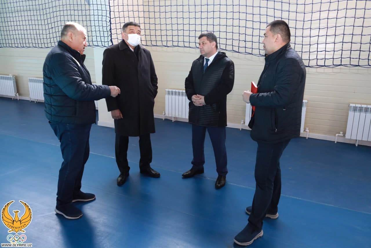 Mutasaddilar tashrif davomida mashg‘ulot olib borayotgan yosh sportchilarimiz bilan ko‘rishib, ularga o‘zining iliq tilaklarini bildirishdi.