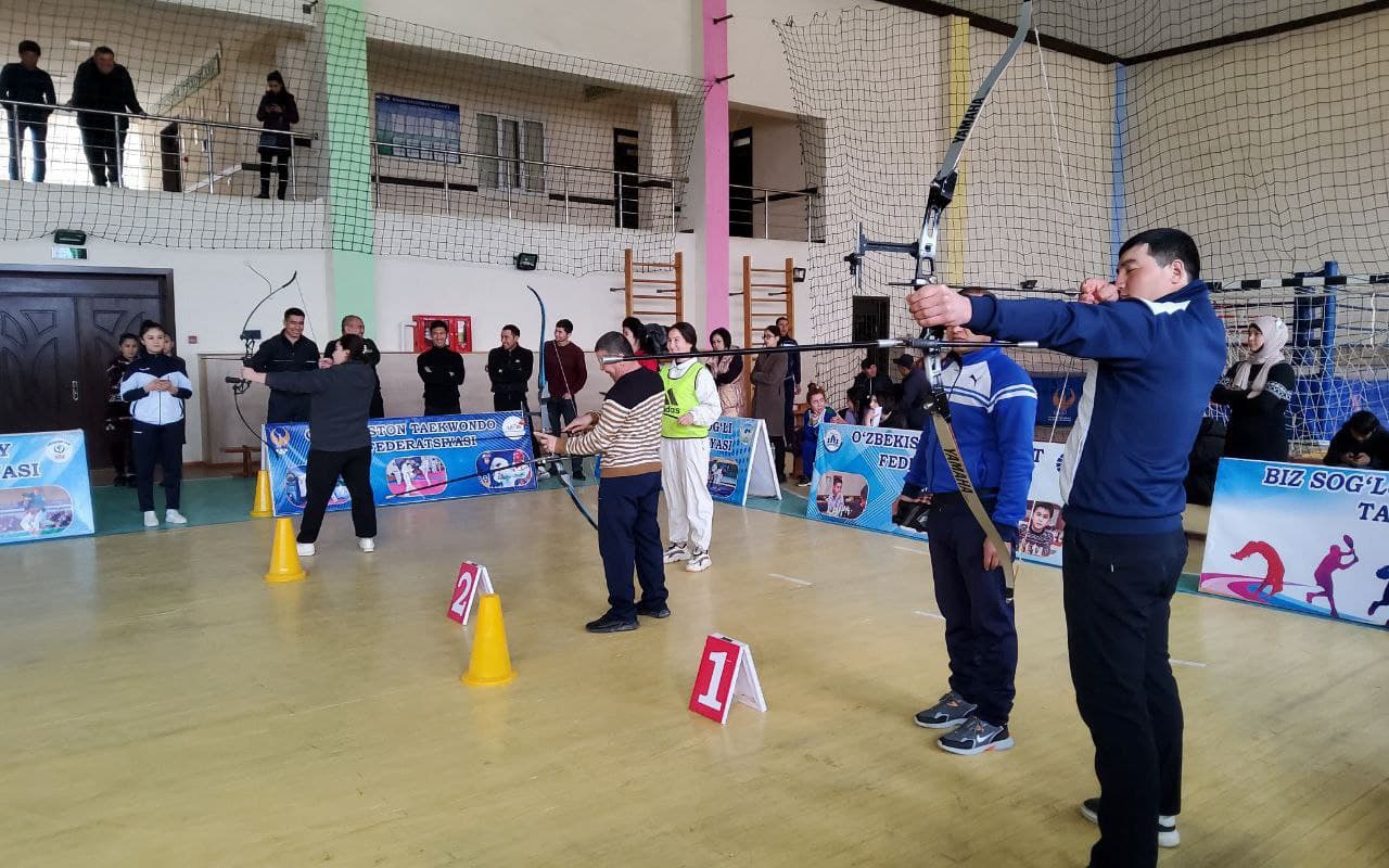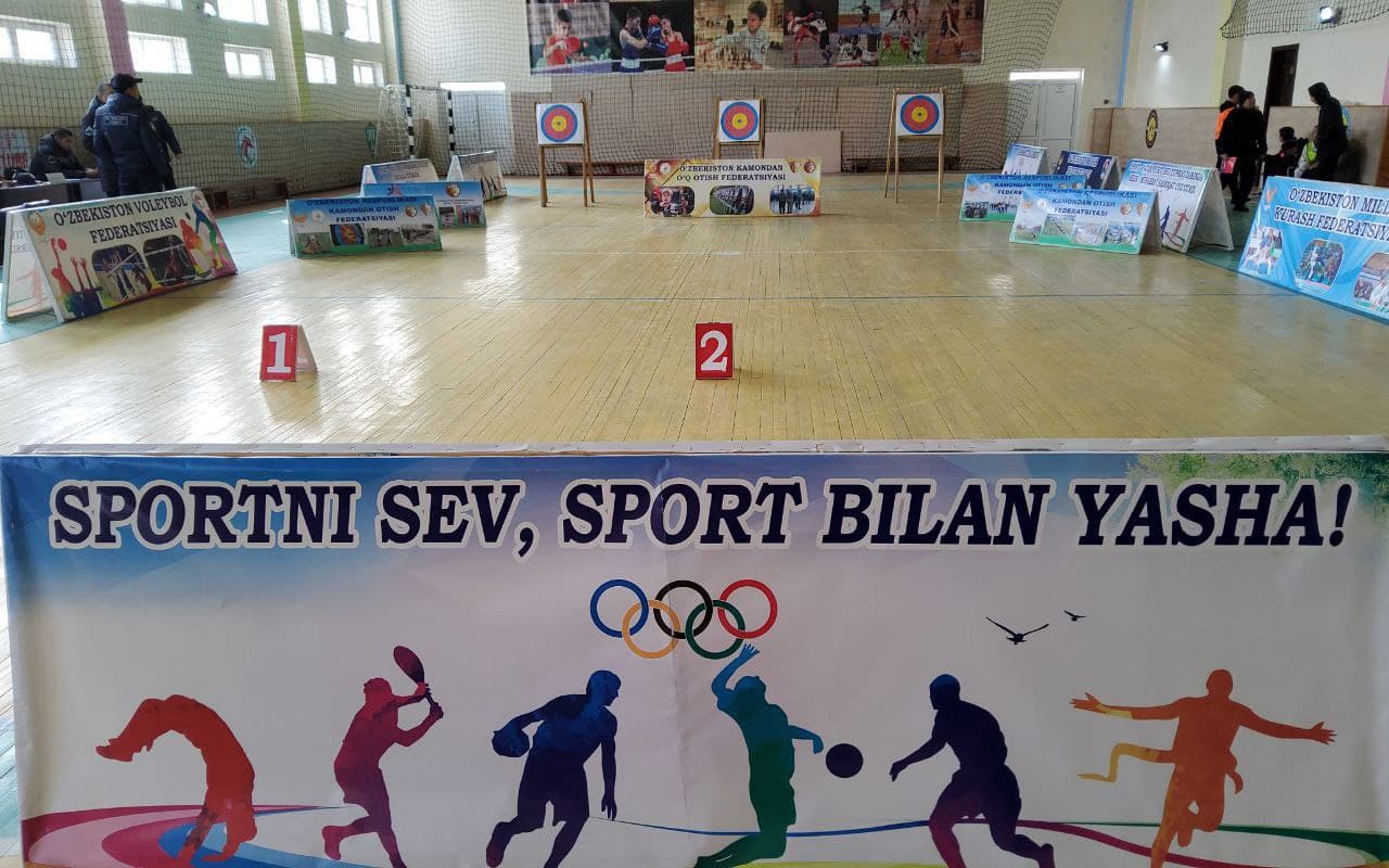 Bugun Sirdaryo viloyati Xovos tumani 2-sonli bolalar-o'smirlar sport maktabida viloyatda kamondan otish sport turini rivojlantirish va O'zbekiston Respublikasi Prezidentining "Kamondan otish sportini rivojlantirish va ommalashtirish chora-tadbirlari to'g'risida"gi qarori ijrosini ta'minlash maqsadida viloyat chempionati o'tkazilmoqda.
