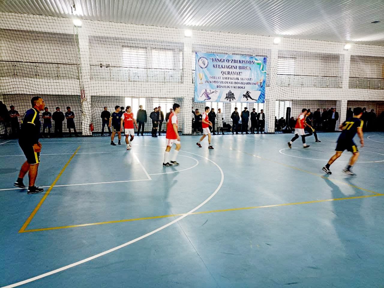 Ayni damda Qorako'l tumanidagi Xalqaro matematika maktabi sport zalida mini futbol bo'yicha musobaqa bo’lib o’tmoqda.