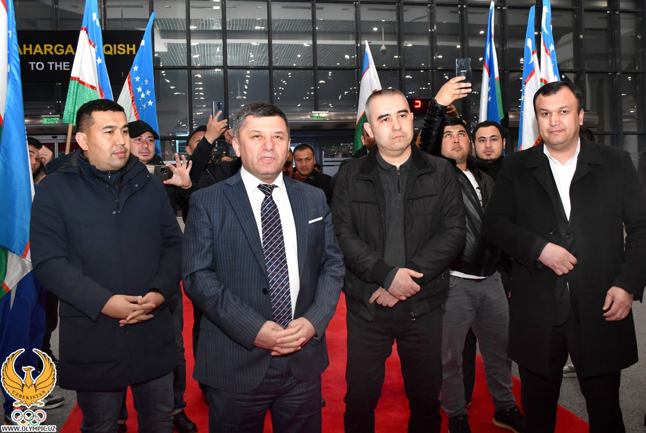 Qahramonlarimiz Islom Karimov nomidagi Toshkent xalqaro aeroportida munosib kutib olindi. Tadbirda Shahrullo Mahmudov boshchiligidagi Sportni rivojlantirish vazirligi mutasaddilari, Milliy Olimpiya qoʻmitasi, Sport yakkakurashlari boʻyicha Respublika Oliy sport mahorati maktabi, Oʻzbekiston boks federatsiyasi va taekvondo assotsiatsiyasi xodimlari, Oʻzbekiston Respublikasi Mudofaa vazirligi xizmatchilari hamda harbiy orkestr, sportchilarimizning yaqinlari, OAV vakillari ishtirok etishdi.