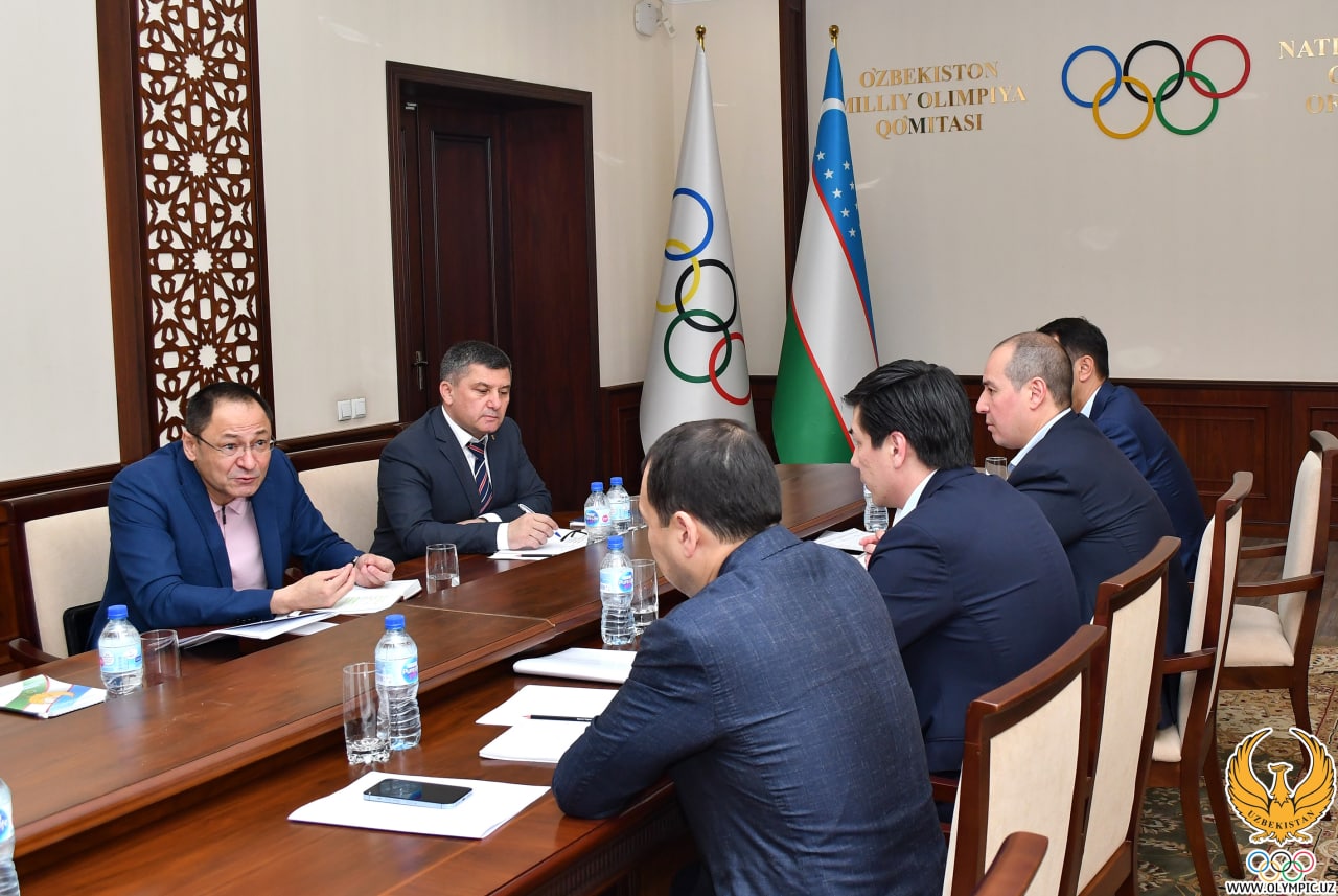 Unda Sportni rivojlantirish vaziri Adham Ikramov va uning oʻrinbosari Shahrullo Mahmudov, MOQ Bosh kotibi Oybek Kasimov va Qoʻmita raisi oʻrinbosarlari Ravshan Irmatov, Saken Polatov hamda Sherzod Tashmatov ishtirok etishdi.