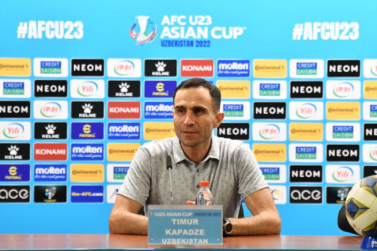 Futbol boʻyicha Oʻzbekiston Olimpiya terma jamoasi bosh murabbiyi Temur Kapadze Osiyo kubogi yarim finalida qoʻlga kiritilgan gʻalabadan soʻng matbuot anjumanida qatnashib, oʻz taassurotlari bilan oʻrtoqlashdi.