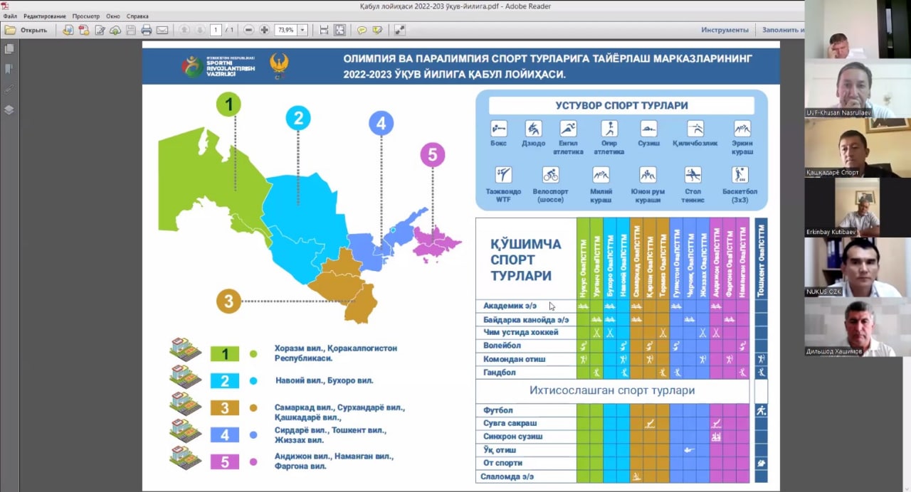 ZOOM platformasi orqali oʻtgan yigʻilishda terma jamoalarimizning tayyorgarligi muhokama qilindi