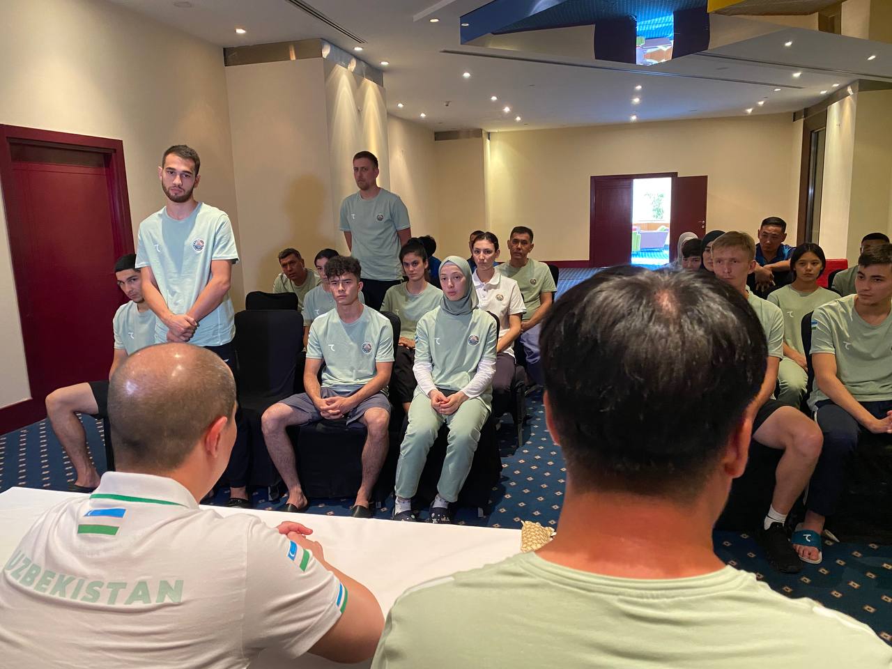 Dastlab taekvondo bo‘yicha sportchi va murabbiylar shtabi bilan yig‘ilish o‘tkazildi. Unda Sherzod Rixsibayevich har bir jamoa vakili bilan birma bir suhbatlashib, ularning musobaqaga olib borgan tayyorgarligi bilan tanishdi. So‘z o‘rnida bo‘lajak u Islom birdamligi o‘yinlarining ahamiyati, oldinga qo‘yilgan vazifalar xususida to‘xtalib, barchadan bellashuvlar davomida bor kuch va imkoniyatlarini ishga solishlarini so‘radi. Shuningdek, musobaqaga tayyorgarlik ko‘rish uchun davlatimiz tomonidan yaratib berilgan sharoitlar haqida to‘xtalar ekan, bunga munosib ravishda yurtimizga chiroyli g‘alabalar bilan qaytish zarurligini ta’kidladi.