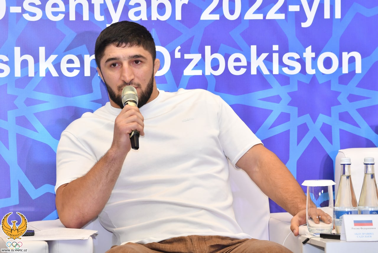 Abdulrashid Sadulayev esa kelajakda UFC promoushiniga oʻtmoqchi emasligi, erkin kurash tarixida ham Olimpiada, ham jahon chempionatlarida eng koʻp gʻalaba qozongan sportchi nomiga erishmoqchi ekanini alohida taʼkidladi. Shuningdek, anjuman davomida boshqa taniqli sportchilar ham OAV xodimlarini qiziqtirgan savollarga atroflicha javob berishdi.