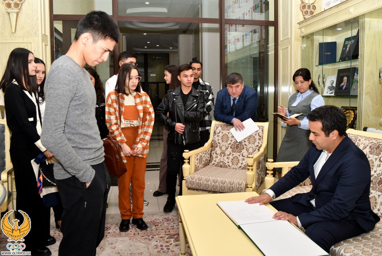 Dastavval mehmonlarga Qoʻmita faoliyati va bino tarixi haqida gapirib berildi. Muzeyda esa yoshlarimizga Olimpiya oʻyinlarining paydo boʻlishi, oʻzbek sportining boy tarixi, atletlarimizning xalqaro maydonda qayd etayotgan yutuqlari haqida batafsil maʼlumot berildi. Shundan keyin soʻnggi davrda jahon arenalarida ulkan muvaffaqiyatlarga erishib kelayotgan sportchilarimiz bilan uchrashuv boʻlib oʻtdi.