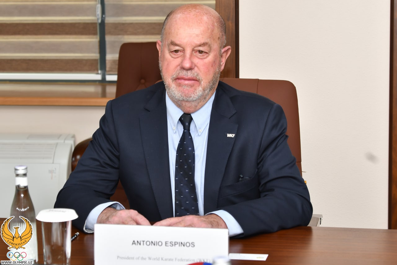 Toshkentda oʻtadigan karate (WKF) boʻyicha Osiyo chempionatining faxriy mehmoni, Butunjahon karate federatsiyasi prezidenti Antonio Espinos poytaxtimizga tashrif buyurgani haqida maʼlum qilgan edik. Bugun Sportni rivojlantirish vazirligida u bilan karate rivojiga oid bir qator masalalar muhokama qilindi.