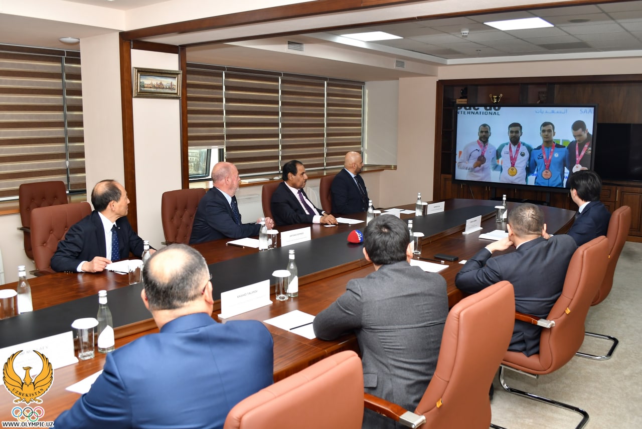 Uchrashuvda Vazir Adham Ikramov, MOQ Bosh kotibi Oybek Kasimov, Oʻzbekiston karate WKF federatsiyasi raisi Rashid Talipov, Osiyo karate federatsiyasi prezidenti, general-mayor Nasir Al Razuqi ishtirok etishdi.