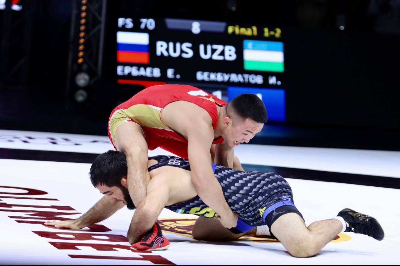Ilyas Bekbulatov hal qiluvchi bellashuvda rossiyalik jahon chempionati sovrindori Yevgeniy Jerbeyev bilan kurashib, 4:2 hisobida gʻalaba qozondi. Abdullayev esa finalda azaliy raqiblaridan biri, Tokio-2020 Olimpiadasi chempioni Zaur Uguyevga 2:3 hisobida imkoniyatni boy berdi va kumush medal bilan cheklandi.