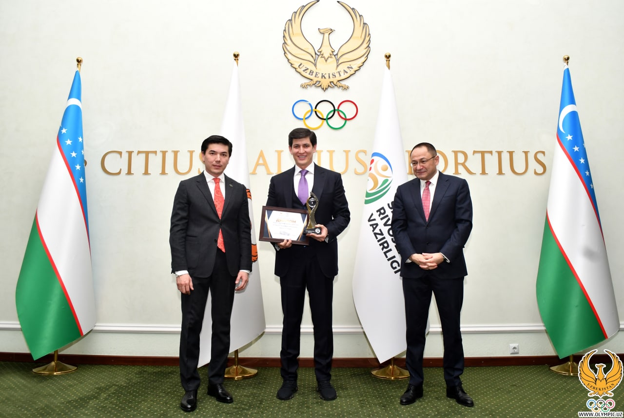 Shuningdek, taqdirlash marosimi doirasida “Milliy sport mukofoti-2022”ning “Xalqaro tadbirlarning eng yaxshi tashkilotchisi” nominatsiyasi gʻolibi Osiyo Olimpiya kengashiga atalgan sovrin tantanali ravishda tashkilotning mamlakatimizdagi vakili, OOK vitse-prezidenti Otabek Umarovga topshirildi.