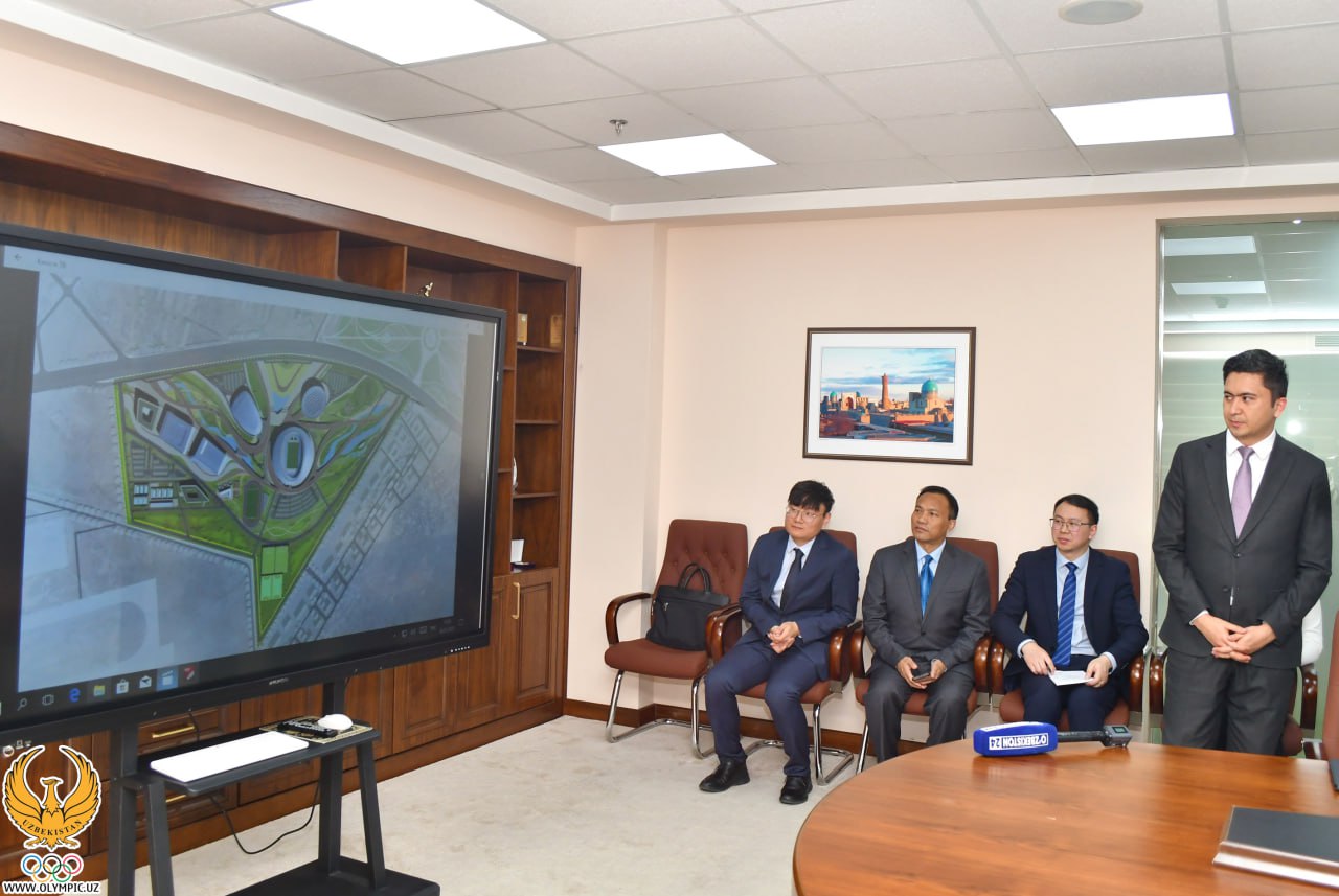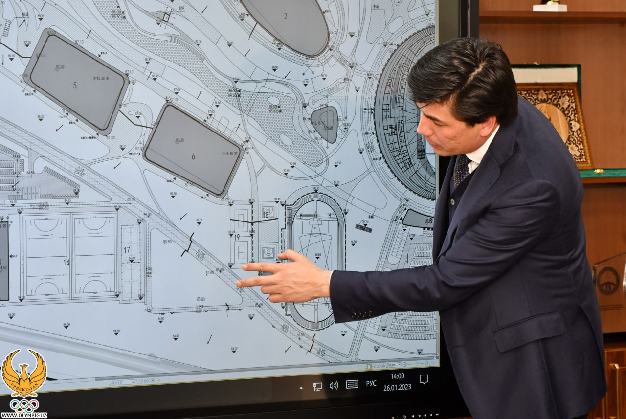 Dastavval, xitoylik muhandislar loyiha haqida batafsil maʼlumot berishdi. Olimpiya shaharchasida barpo etiladigan har bir obyekt, uning parametrlari, qanday xom-ashyolardan qurilishi haqida toʻxtalib oʻtishdi. Shundan soʻng Adham Ikramov loyiha haqida qoʻshimcha maʼlumot berdi.