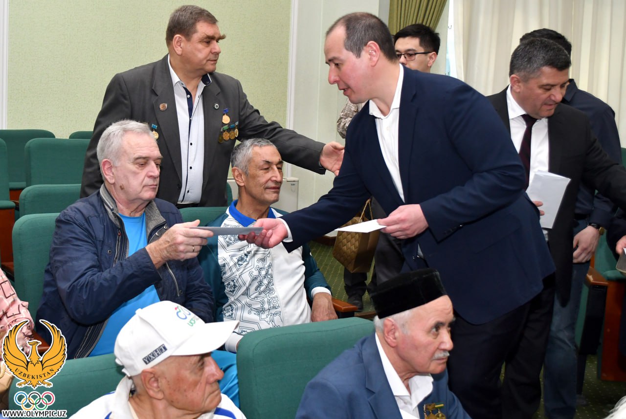 Bugun Yoshlar siyosati va sport vazirining oʻrinbosari Shahrullo Mahmudov, MOQ Bosh kotibi Oybek Kasimov, Qoʻmita raisi oʻrinbosari Sherzod Tashmatov, Oʻzbekiston sport faxriylari kengashi raisi Bahodir Maxsitov, Kasaba uyushmalari federatsiyasi masʼul vakili Bahodir Tojiyev, faxriylarimizni tabriklash uchun MOQda jam boʻlishdi.