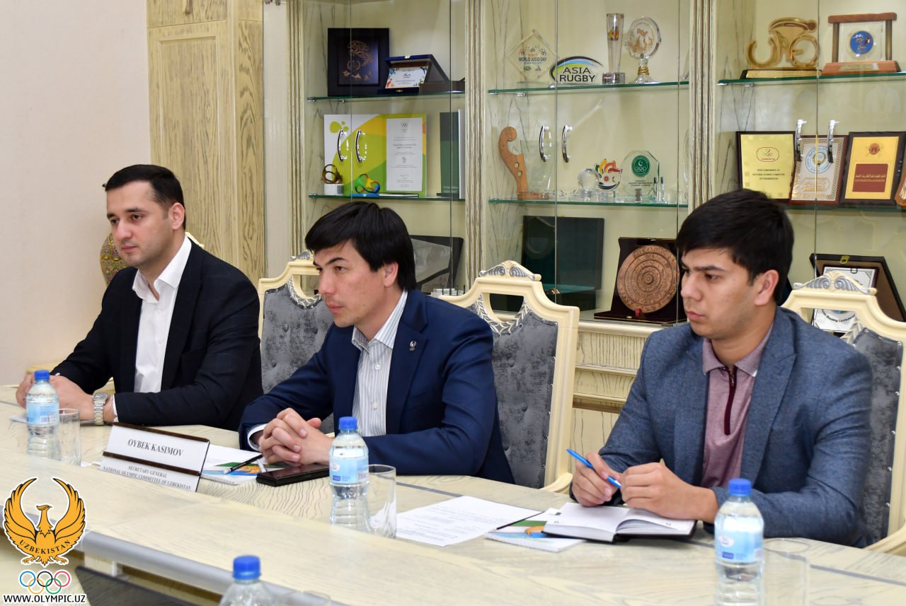 “CNSG SPORTS DEVELOPMENT CO., LTD” (Xitoy) kompaniyasining xorijiy mamlakatlardagi qurilish ishlari boʻyicha masʼul vakili Sun Bodong hamda konsultatsiya-dizaynerlik boʻlimi rahbari Chjan Bo Oʻzbekiston Milliy Olimpiya qoʻmitasiga tashrif buyurishdi. Mehmonlarni MOQ Bosh kotibi Oybek Kasimov qarshi oldi. Shundan soʻng tomonlar oʻrtasida hamkorlik aloqalarini yoʻlga qoʻyish boʻyicha muzokara olib borildi.