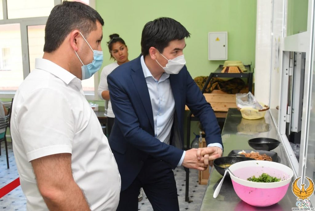 Asosiy jamoalarimiz Tailand va Yaponiyadagi Tokio-2020 litsenzion musobaqasida ishtirok etayotgani bois bazada zaxira sportchilari, yoshlar jamoasi va Tokio-2020 litsenziatlari qolgan. O‘rganishlar natijasida bazadagi kommunal tizim va ovqatlar ratsionida bir qator muammolar mavjudligi maʼlum bo‘ldi. O‘z navbatida, Oybek Kasimov federatsiya mutasaddilariga yuqori kaloriyaga boy, mazali taomlar menyusini qayta ko‘rib chiqish, mavjud shu va boshqa muammolarni bartaraf etish, sportchilarimizning maʼnaviy dunyoqarashlarini oshirish borasida qatʼiy ko‘rsatmalar berdi.