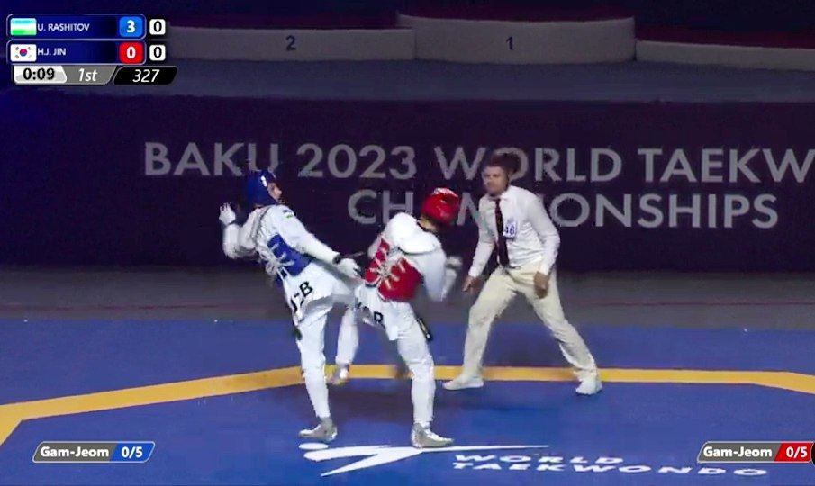 Bokuda start olgan taekvondo WT boʻyicha jahon chempionati Oʻzbekiston terma jamoasi uchun omadli boshlandi. Ilk kunning oʻzidayoq terma jamoamiz bronza medaliga sazovor boʻldi.