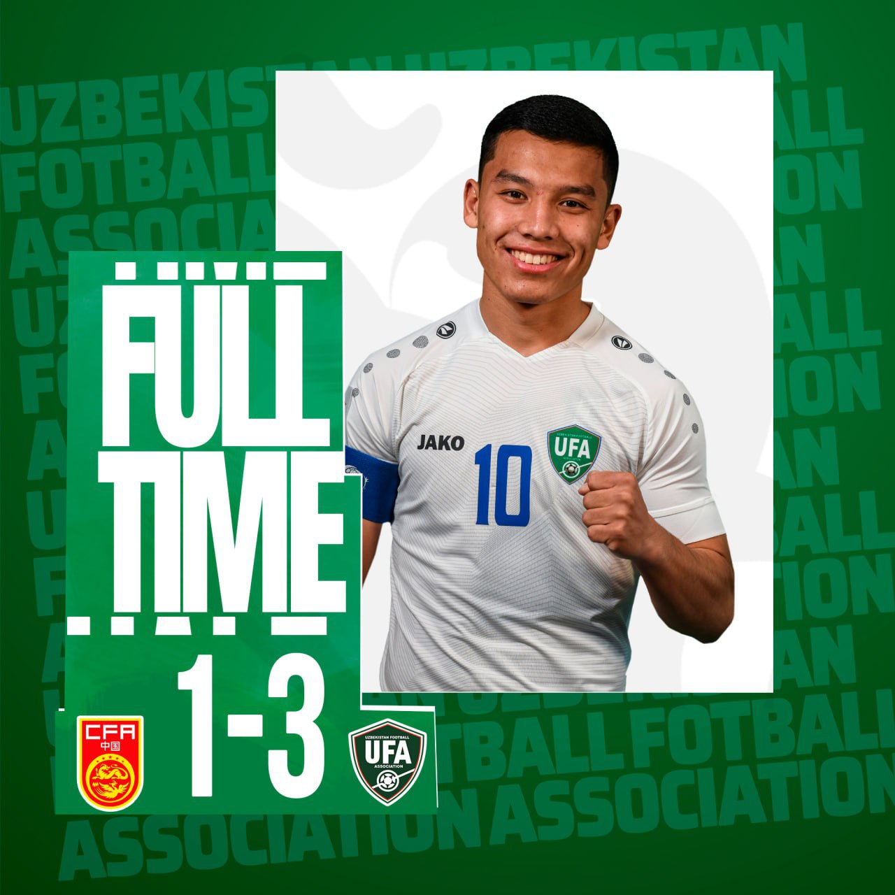 Olimpiyachilarimiz Xitoy U-23 jamoasiga qarshi safarda kechgan nazorat uchrashuvida 3:1 hisobida gʻalaba qozonishdi. Jamoamiz safida gollarga Mahmud Maxamadjonov, Umarali Rahmonaliyev hamda Alisher Odilov mualliflik qilishdi.
