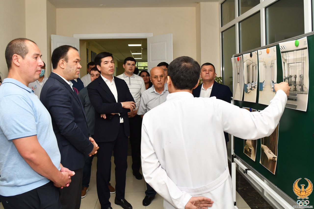 Mutasaddilarga markaz direktori Kamol Sirojitdinov hamrohlik qilib, soʻnggi davrda amalga oshirilgan yangiliklar bilan tanishtirdi. Maʼlumki, markaz sportchilarimizdan tashqari hamyurtlarimizga ham tibbiy xizmat koʻrsatadi. RSTIAMda shifokorlar koʻrigida statsionar davolash imkoniyati ham mavjud boʻlib, bugun ushbu boʻlim toʻliq rekonstruksiya qilindi va zamonaviy qiyofa ochdi.