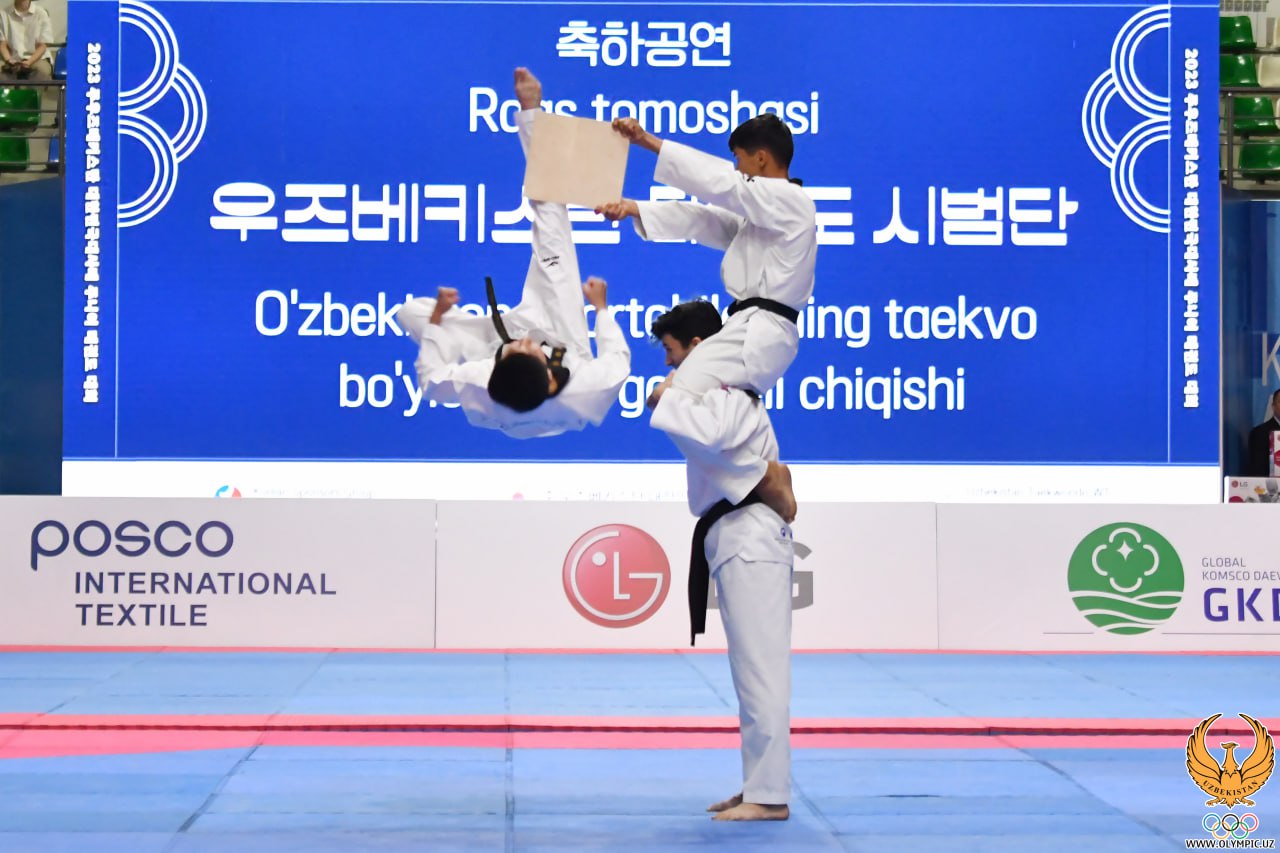 Shu kunlarda poytaxtimizdagi “Universal” sport saroyida taekvondoning WT yoʻnalishi boʻyicha Koreya Respublikasi elchisi kubogi boʻlib oʻtmoqda. Yigirmanchi bor tashkil etilayotgan bu yilgi bellashuvlarda yurtimizning barcha viloyatlari va Qoraqalpogʻiston Respublikasidan jami 500 nafar yosh sportchi ishtirok etmoqda. Bugun musobaqaning tantanali ochilish marosimi boʻlib oʻtdi.