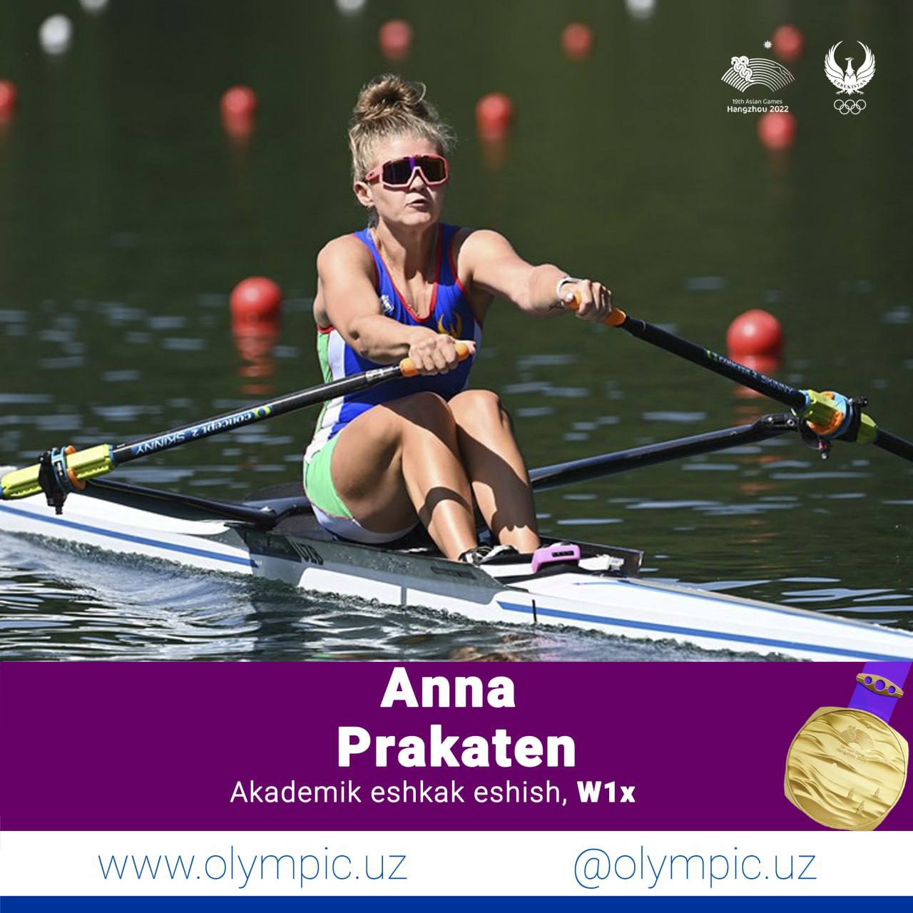 Osiyo o’yinlarining bugungi kuni O’zbekiston terma jamoasi uchun muvaffaqiyatli boshlandi. Akademik eshkak eshish bo’yicha ayollar o’rtasida kechgan yakkalik dasturida hamyurtimiz Anna Prakaten delegatsiyamizga ikkinchi oltin medalni taqdim qildi. Kumush va bronza medallari esa Xitoy hamda Yaponiya vakillariga nasib etdi.